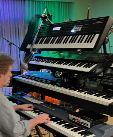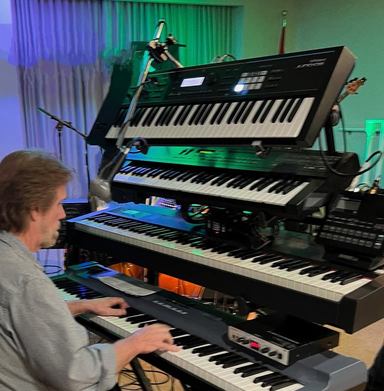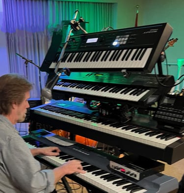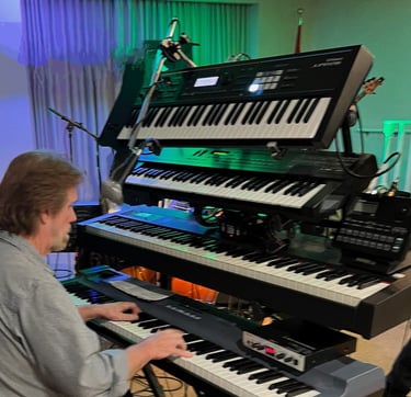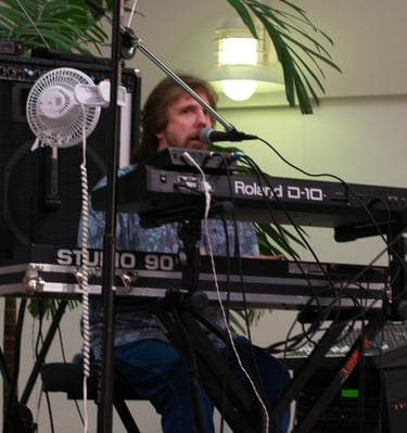 Jeff Burns (keyboards, vocals), Jeff started playing piano at age 3! He went on to study piano composition and orchestration at Juilliard in N.Y. Jeff has written and recorded all styles of music including; country, pop, disco, jazz, classical and a piano concerto for full orchestra. one recording received BILLBOARD listing in the "Most Promising" category. Jeff played at the Clearwater Jazz Festival in 1982. He relocated to Florida in 1997, when he joined the FlashBack Band. His Amazing versatility on the keys has helped create a big sound not usually attained by live bands!