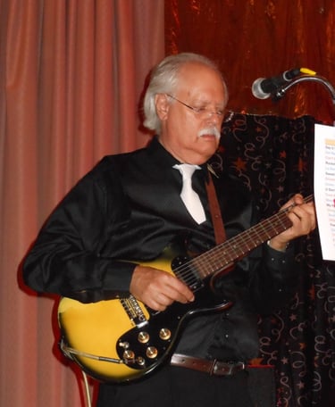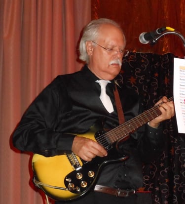 Greg Richardson- Lead guitar, Lead and Background Vocals. Greg started playing his Gibson Melody Maker Guitar in the early 60's. At age 16, he was offered a job doing studio work in Atlanta, but turned it down due to his age. Greg appeared with Bertie Higgins as well as local bands; Hellbenders and The Fugitives. While in the Navy on an aircraft carrie, he jammed with other sailor musicians. In 1993, Greg was brought onto the FlashBack Band by Richard Garland. He brought the trademark guitar sounds reminiscent of Johnny Rivers, the Ventures, Chuck Berry and Santana. Aditionally, Greg worked in the studio with Michael Dan Ehmig who wrote songs for ; Ozzy Osborne, Lita Ford, Joe Cocker and Meat Loaf. Greg was part of a group on radio "WMNF" for this project. One popular song was "Rock and Roll Mercenaries."