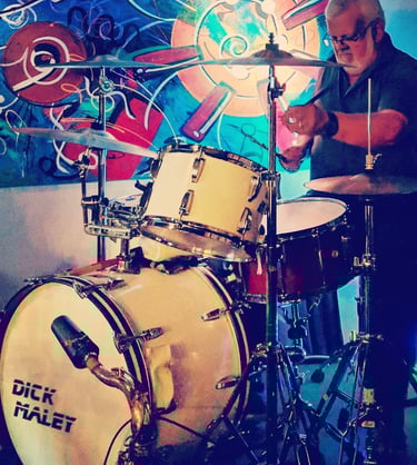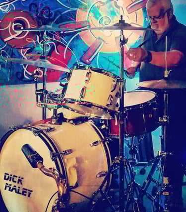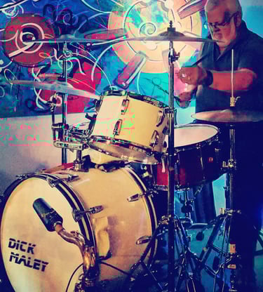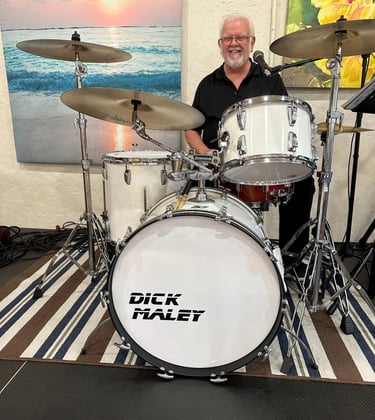 Dick "Spanky" Maley/ Drums & vocals: Born in Washington, D.C. He attended Shenandoah College and Conservatory of Music in Winchester, Va. After college, he performed at Kings Dominion Amusement Park in Ashland Va; north of Richmond. Dick moved to New Orleans in 1978 at age 22, where he performed in many notable night clubs on Bourbon Street with the "New Dixie Zing Kings" Dixieland show band. 1980 saw a move to Clearwater, Florida where he honed his Jazz skills under the tutelage of many great Jazz artists, such as; Al Hirt, Pete Fountain, Bill Allred, Tom Saunders, Chuck Hedges, Henry Cuesta, Bob Draga, Mike Vax, Bob Havens, Johnnie Varro and Ms Connie Haines, just to name a few. Dick "Spanky" presently resides in Lakeland, Florida, near Orlando where he performed for the Walt Disney Company in many musicals, as well as playing in local and international Jaxzz Festivals. Currently, you can see Dick perform with international artists "Comet Chop Suey Jazz Band" at Jazz festivals in the USA and abroad.